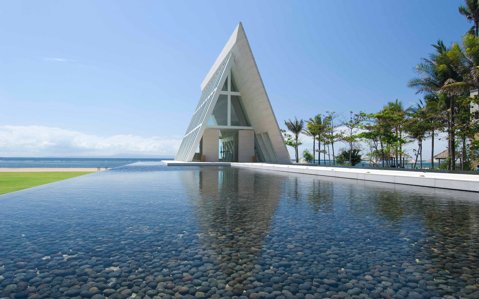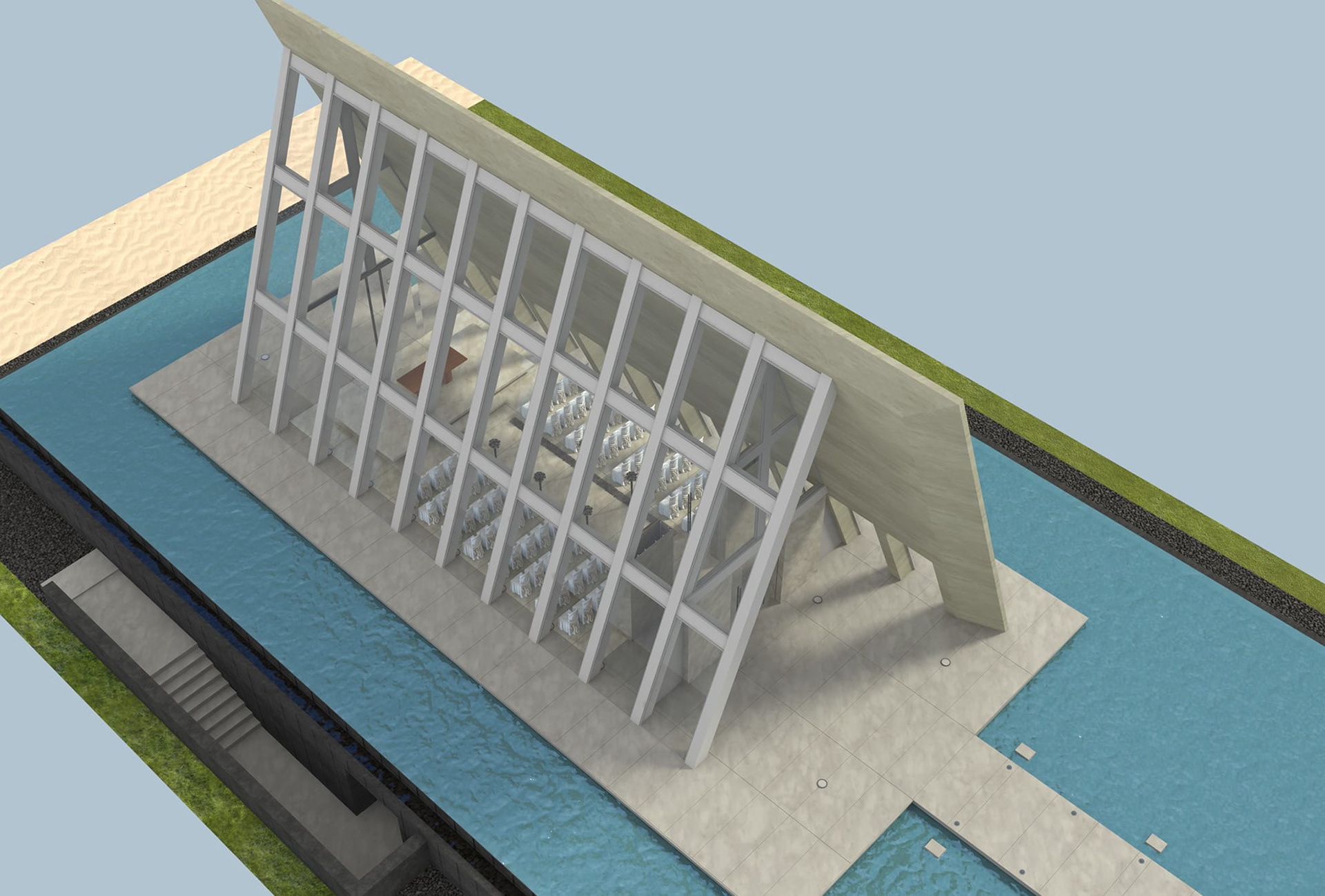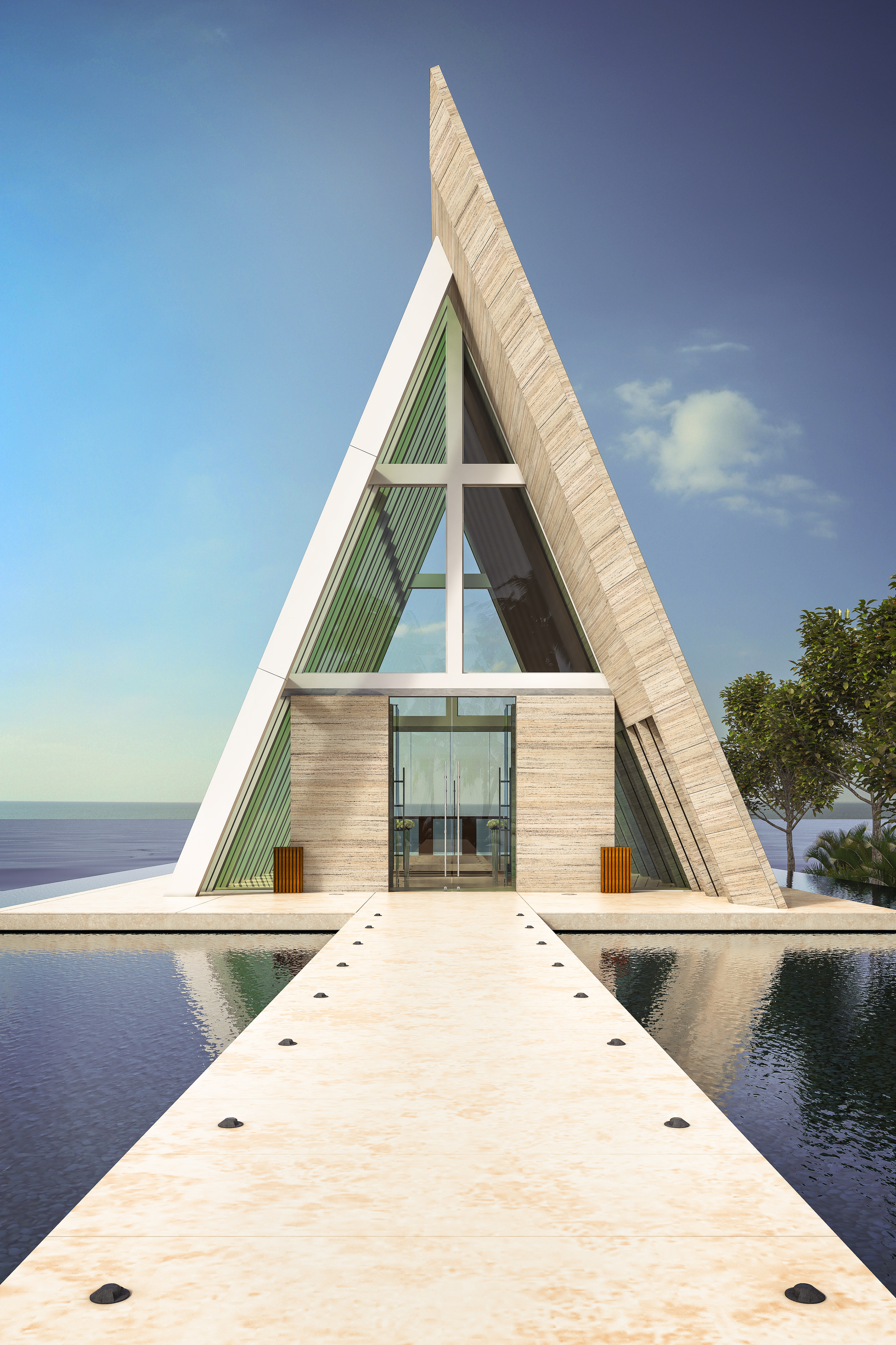 Wizualizacje warsztatowe w celu uzyskania fotorealizmu. Powstały tylko na podstawie internetowych zdjęć istniejącej kaplicy znajdującej się na Bali.