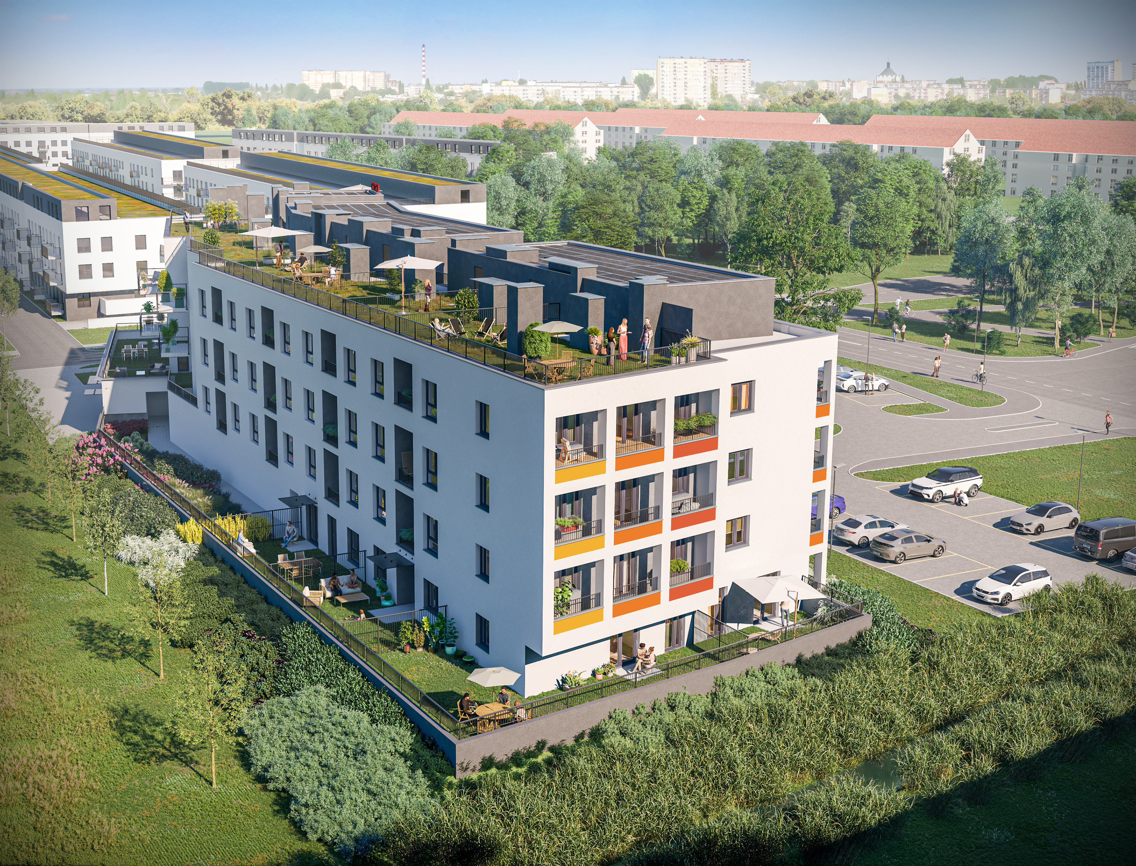 Wizualizacje architektury mieszkaniowej - nowe osiedle Viva Jagodno we Wrocławiu.